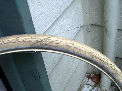 I’m pleased and impressed. The Big Apple tires I bought from an internet acquaintance were covered under Schwalbe’s “yep, that’s a broken bead” warranty. They were pretty new, and I didn’t DO anything to them, but still – I like that they replaced it with a fresh one. New tread, and it appears smaller than the old one, both things that are fine with me, since I filed the front derailleur stop to make the old one fit.