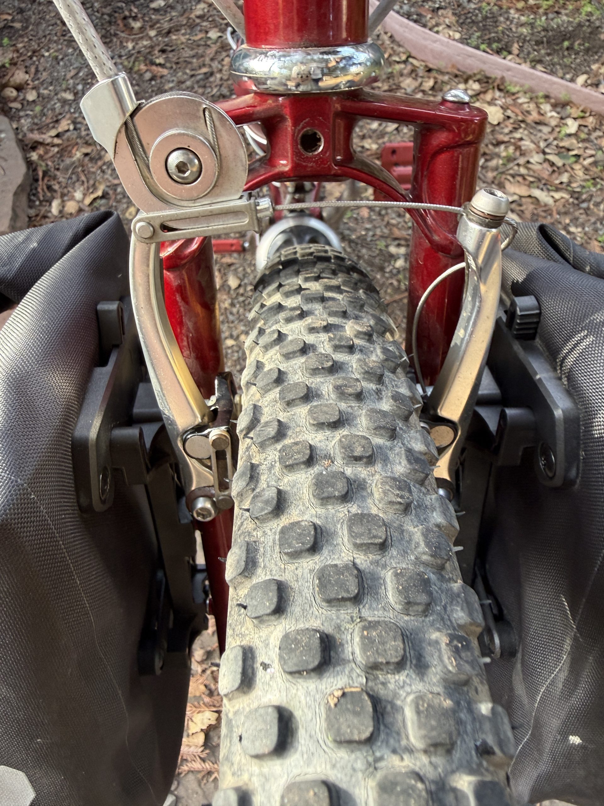 Cleaning the rim seemed to help the crazy squeal, so I put the shiny brake and new pads (sanded of course) on the Fitz for tomorrow’s road run out to Forestville.
