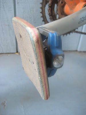 **Update** These pedals are now available for sale from BikeTinker.comA while ago I posted about the skate-deck platforms I made to clip into clipless pedals. I screwed old Eggbeater cleats into cut-out chunks of skateboard deck, then clipped the platforms into the pedals, so I could ride in regular shoes.