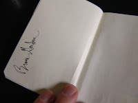That’s Sacha White’s autograph at the top of the page. Tom Oswald was about the last guy I talked to, he was starting away from his booth as they were shutting off the lights, but came back to talk to me. I was inarticulate and weird, and he was gracious and smart. Oddly, he randomly chose to sign under Sacha, bringing it full circle.