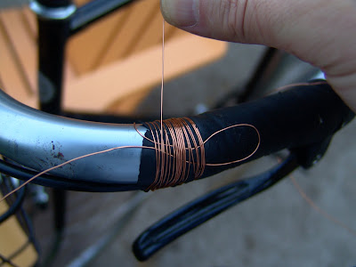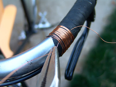 For some reason, I’ve never been a fan of the Rivendell twine finish for bar wrap, but I stole the basic principle and applied it to copper wire. I did a thrash job for a couple of reasons: