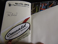 That’s Sacha White’s autograph at the top of the page. Tom Oswald was about the last guy I talked to, he was starting away from his booth as they were shutting off the lights, but came back to talk to me. I was inarticulate and weird, and he was gracious and smart. Oddly, he randomly chose to sign under Sacha, bringing it full circle.